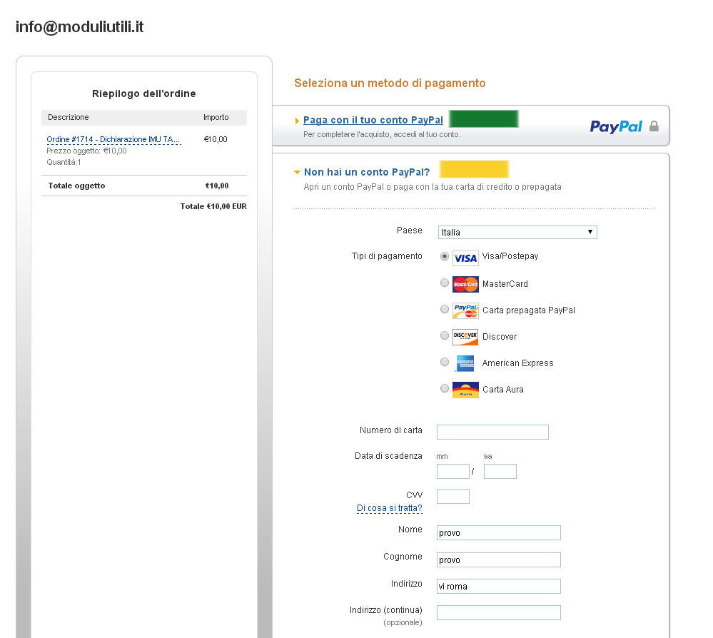 (Nota: non è necessario possedere un account PayPal per pagare con carta di credito.)