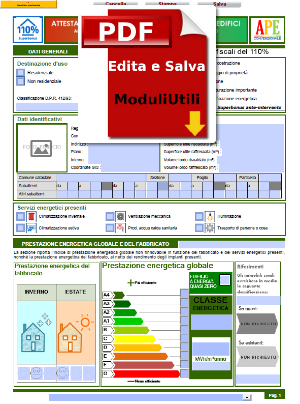 - 1 – Modello APE Ordinario editabile (Appendice B – Attestato di Prestazione Energetica)