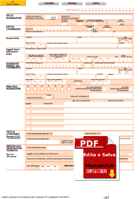 file conforme per stampa e grafica al modello dell’Agenzia dell’ entrate. Modello conforme al Provvedimento del 31 gennaio 2017 e successiva modificazione del 11 maggio 2017